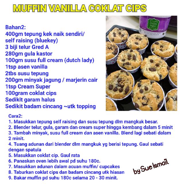 Asalamualaikum.cikgu baru ade time nak p masuk resepi korg. Request resepi yg korang nak kami buat di. No caption.tap tap tap air liur. Tutorial resepi muffin coklat chip azlina ina. 20 ogos jam 7:25 pg · 15k paparan. Tabur coklat chips atau coklati rice secukupnya ikut keinginan sendiri. Walaupun wanita ini sendiri adalah usahawan bakeri . Tgn je siap.muffin coklat dan coklat chips simple lets segoooo hahhaa.